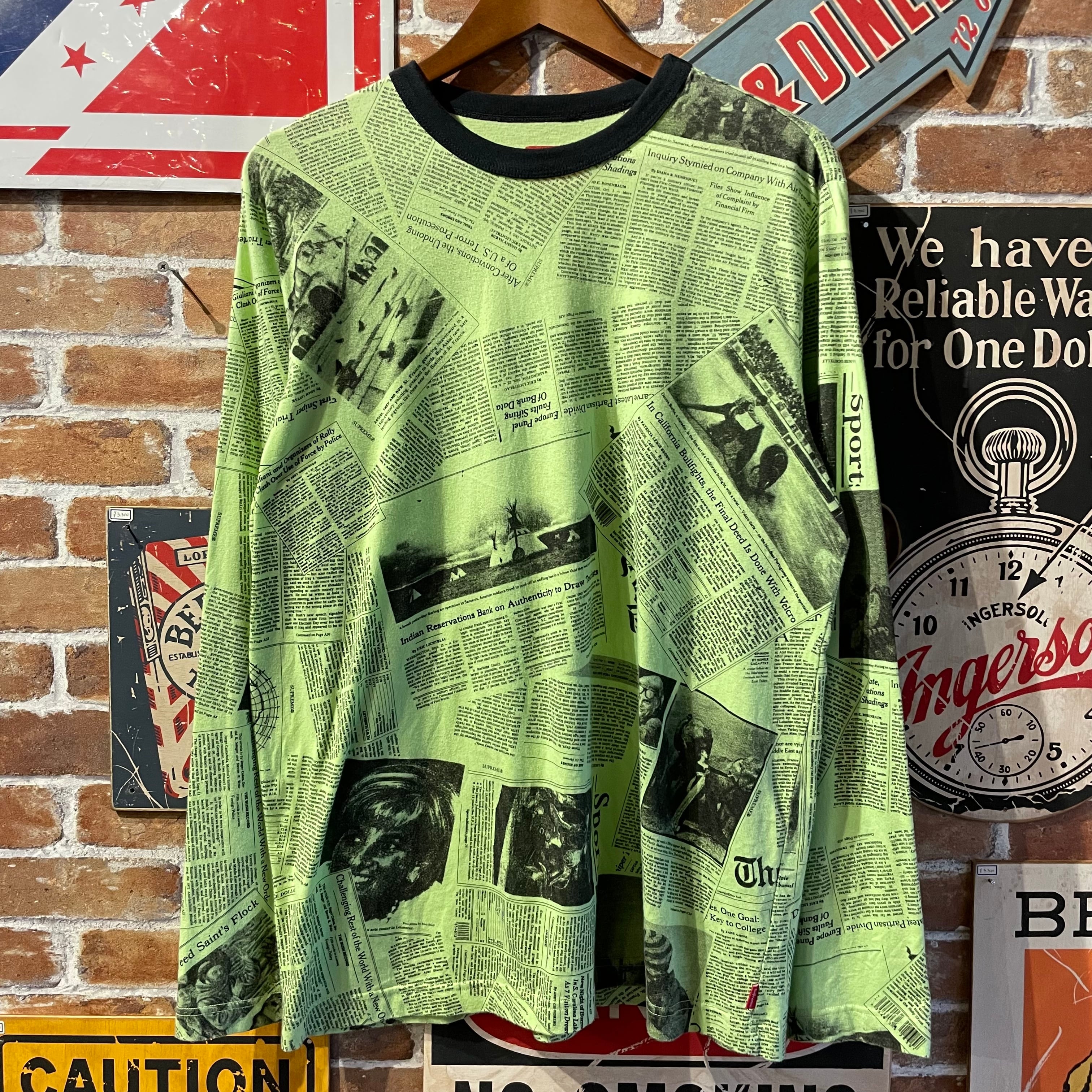 Supreme シュプリーム 12AW ニュースペーパー ロンT 長袖 Tシャツ グリーン