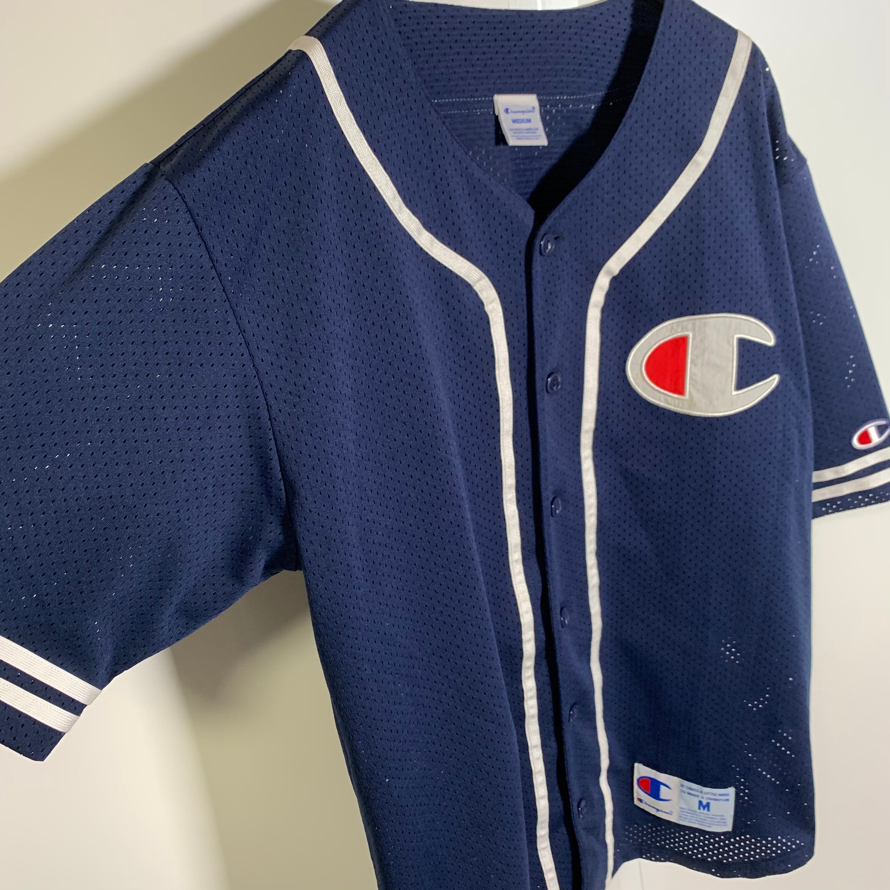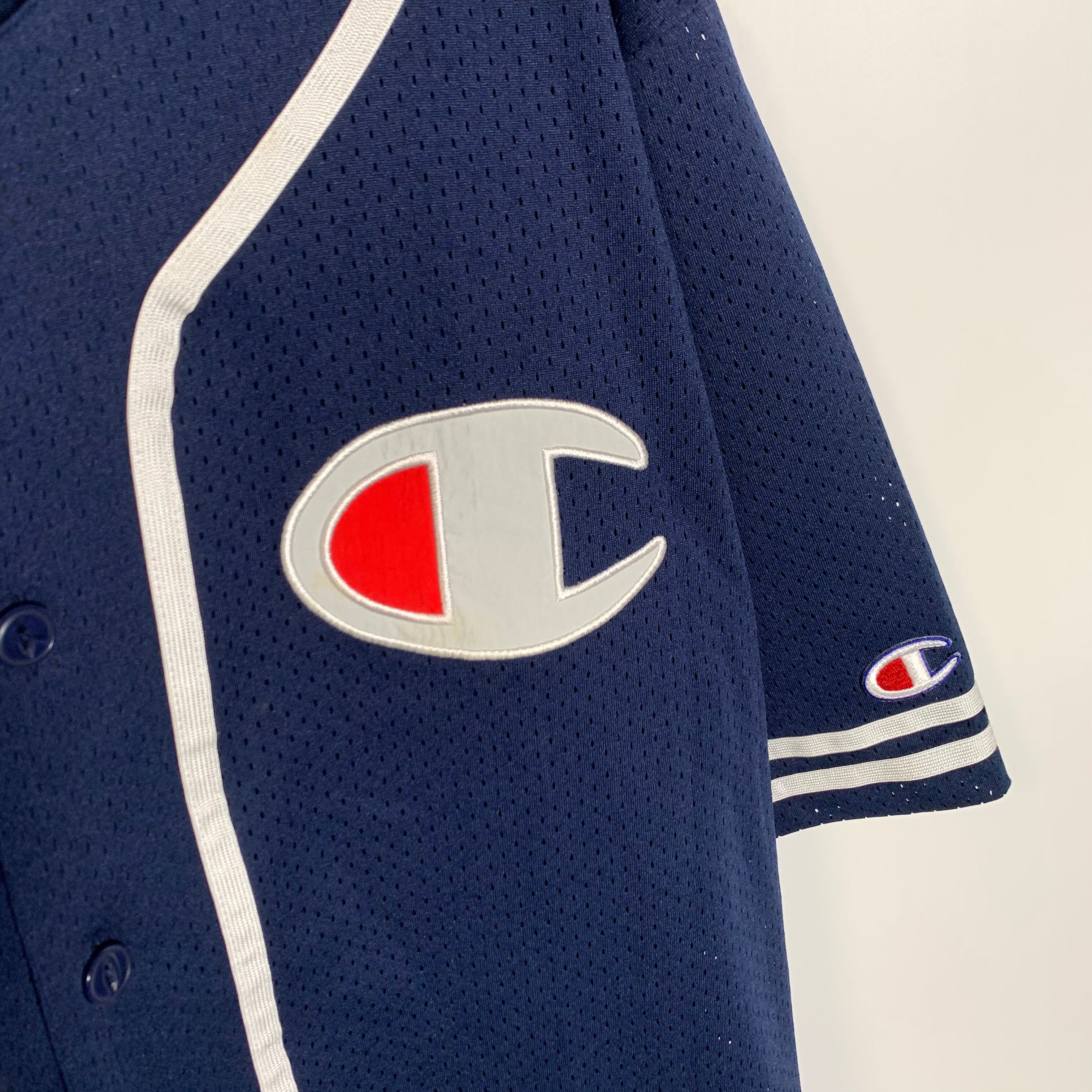 champion チャンピオン メッシュ ベースボールシャツ ロゴ ネイビー