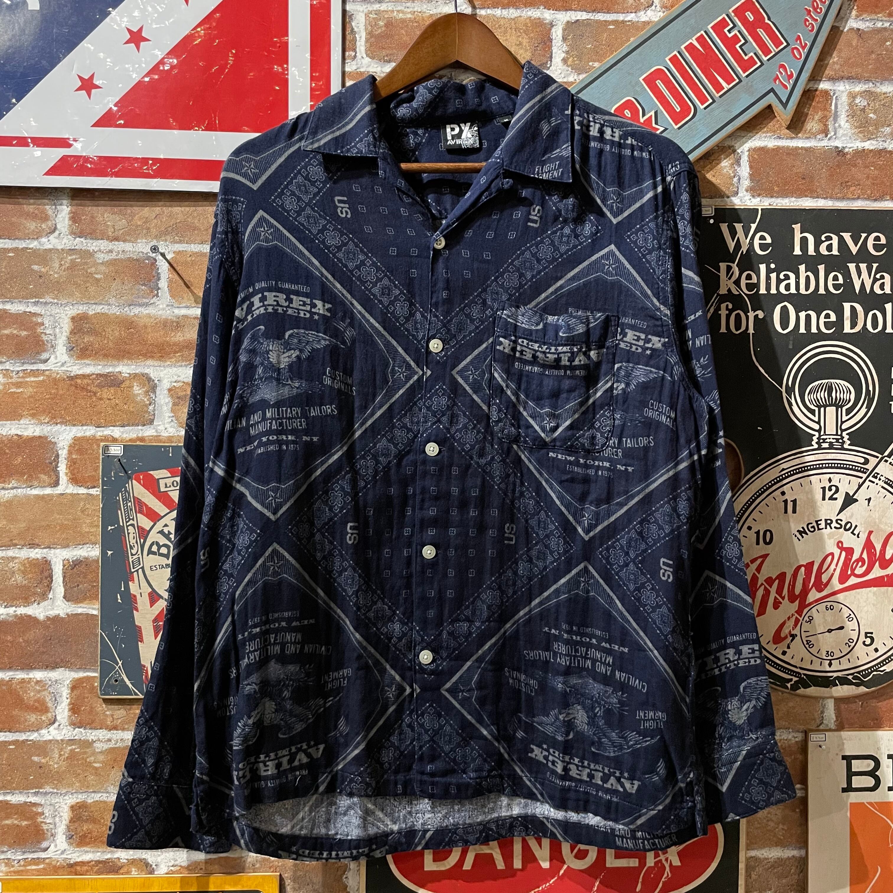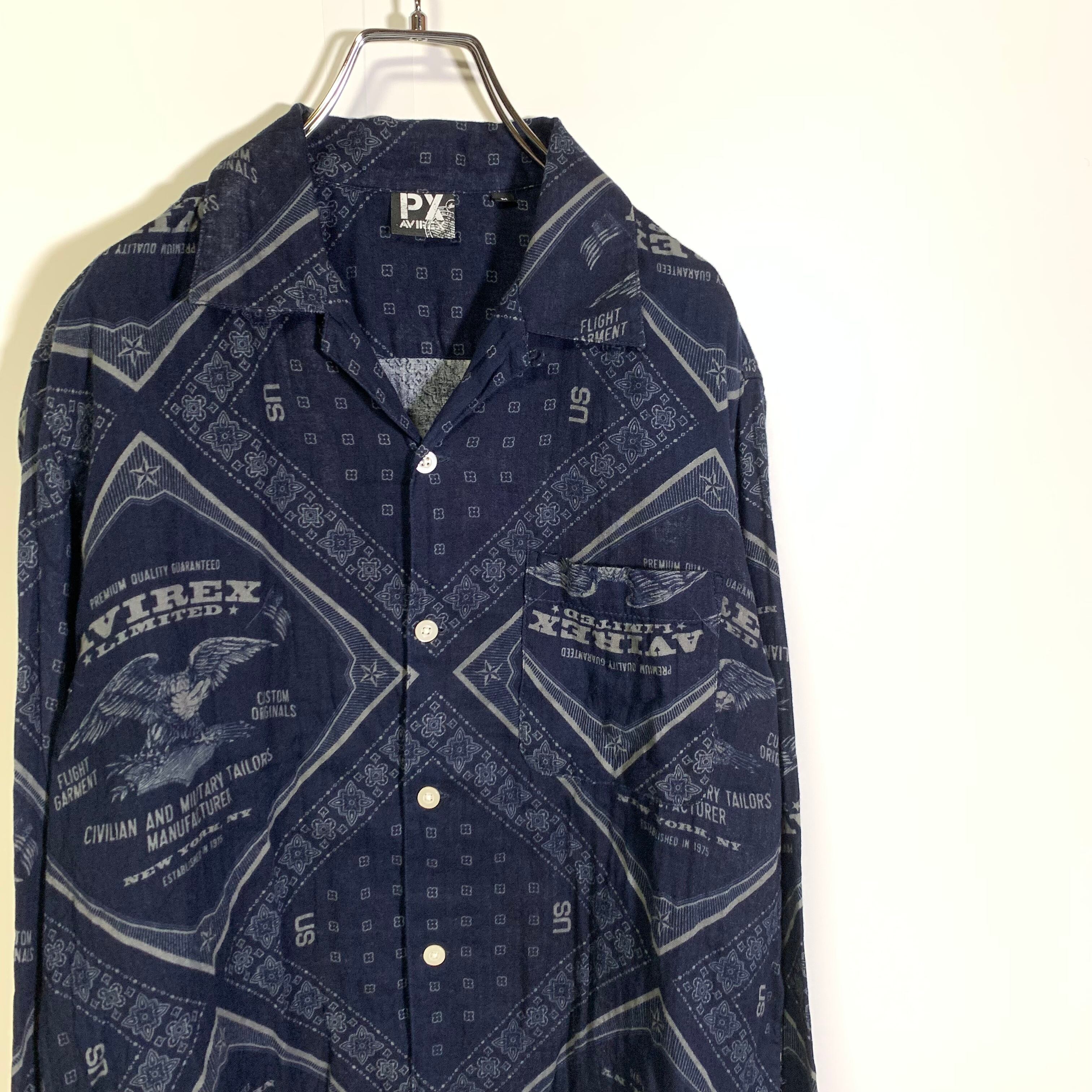 AVIREX アヴィレックス 総柄シャツ ロゴ ミリタリー ダークカラー