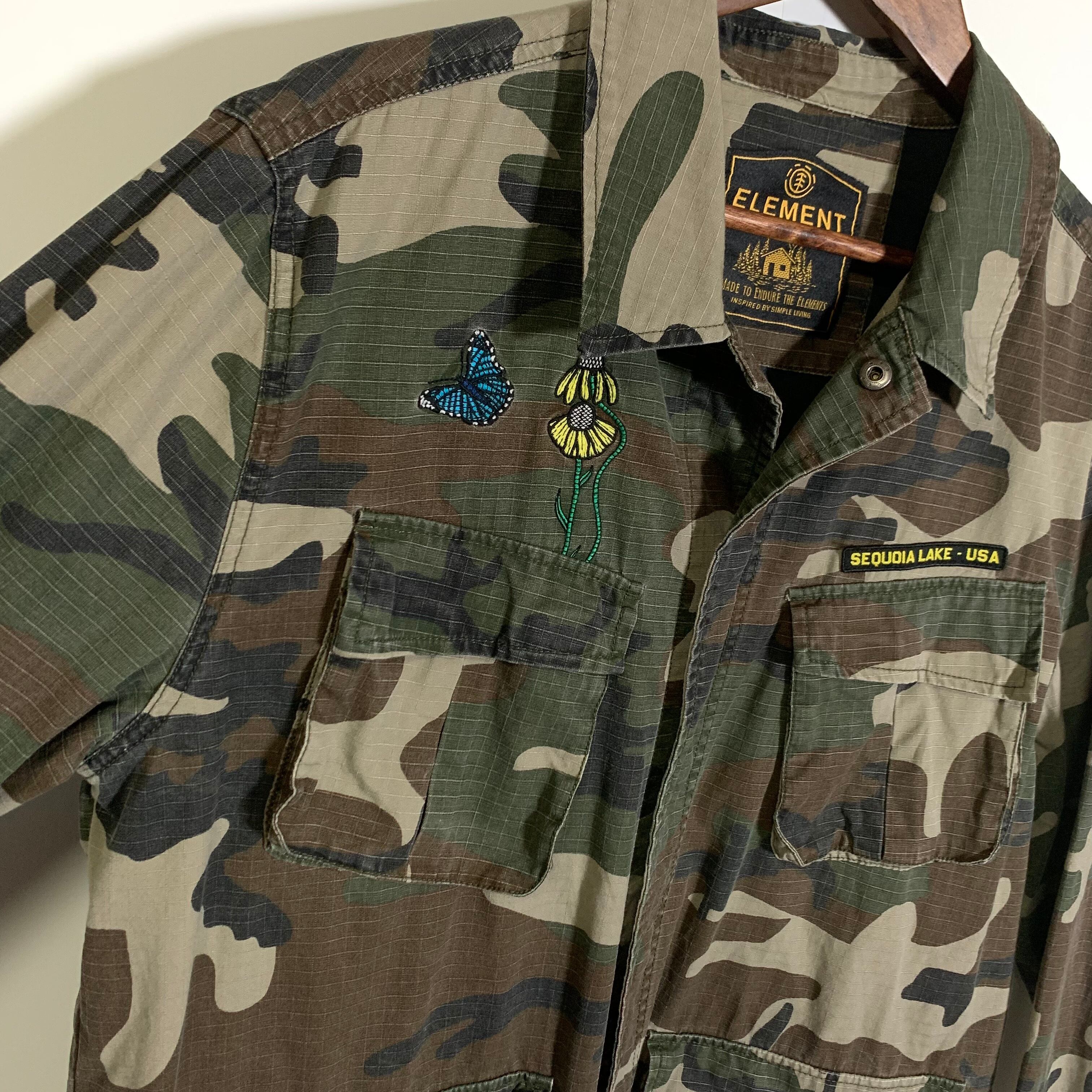 ELEMENT エレメント ミリタリー シャツジャケット カモ 刺繍 ワッペン