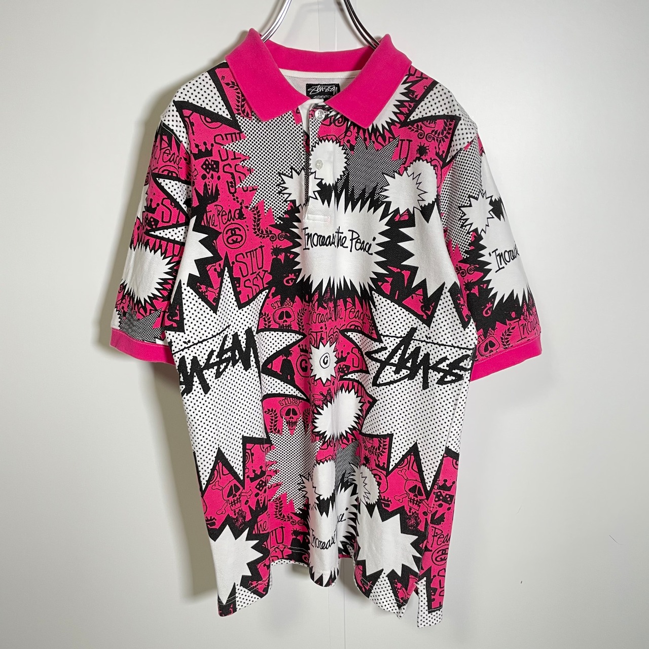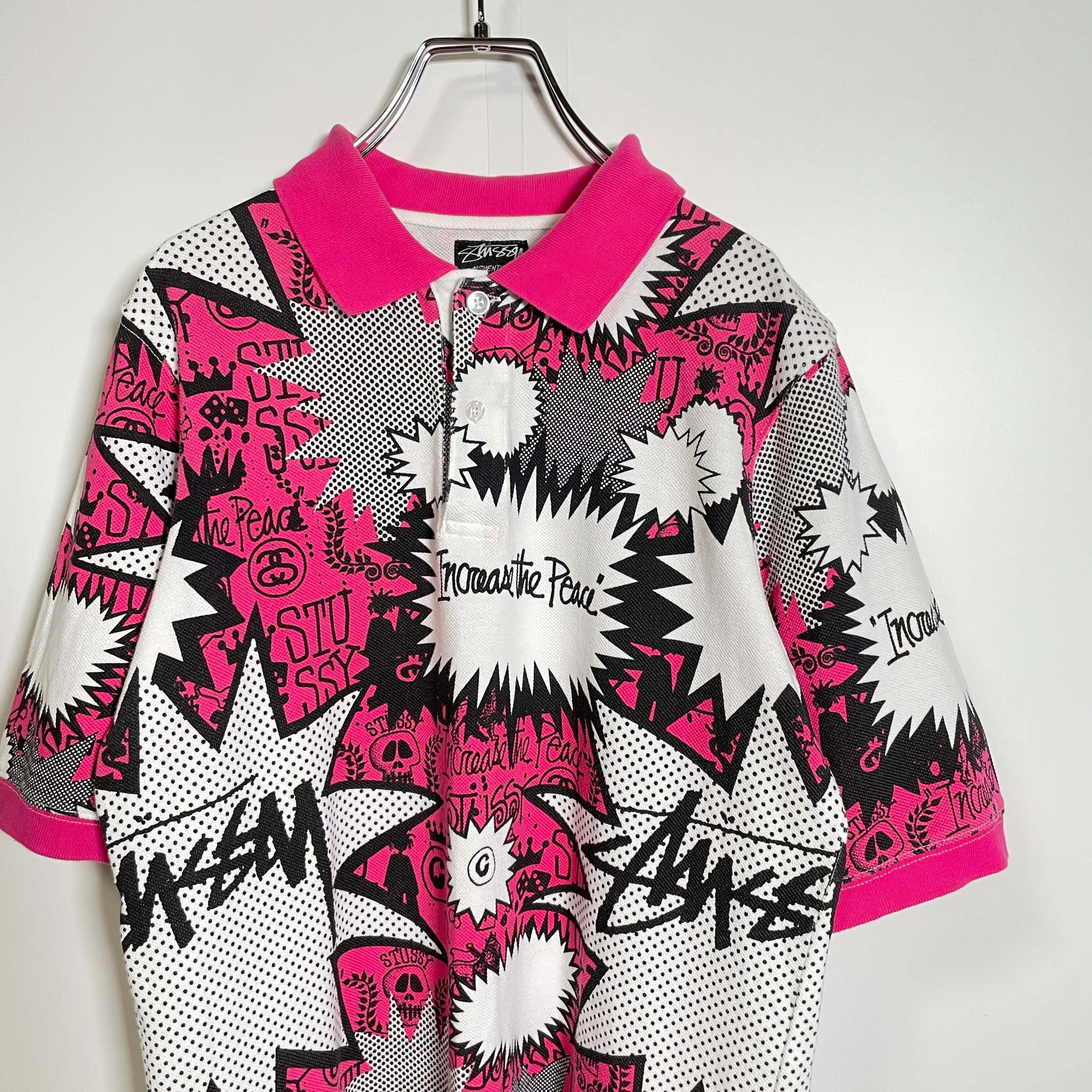 STUSSY ステューシー ポロシャツ アメコミ ロゴ フキダシ 総柄