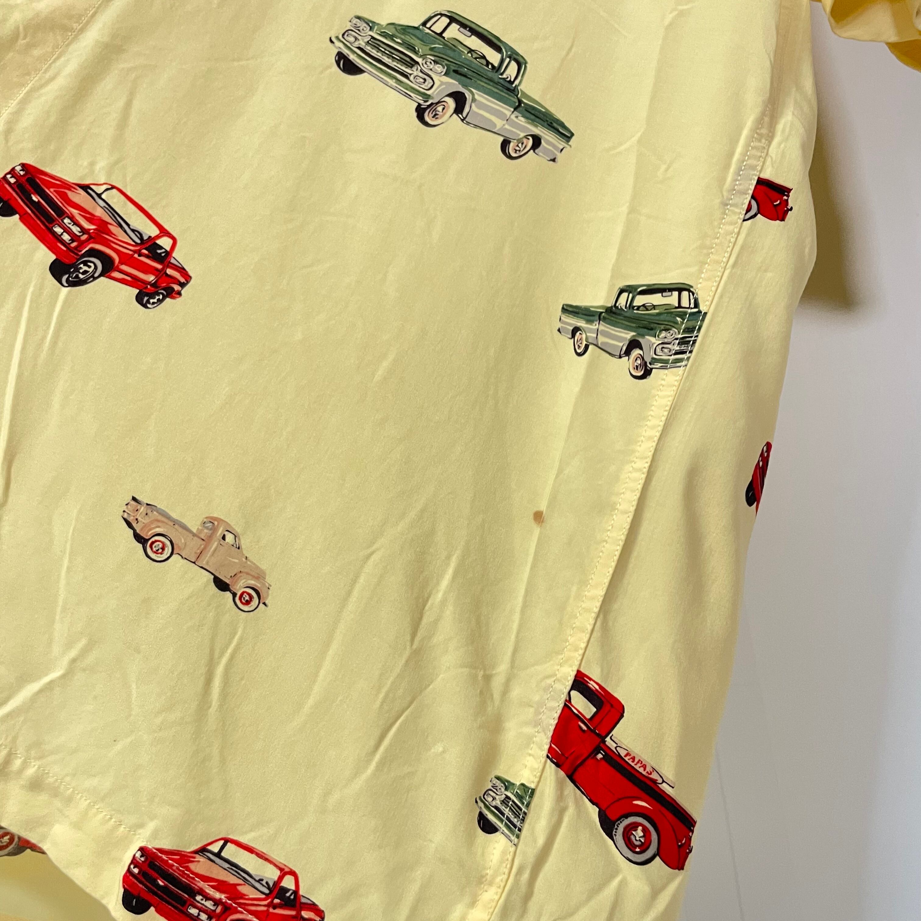 PAPAS パパス レーヨン アロハシャツ クラシックカー イエロー