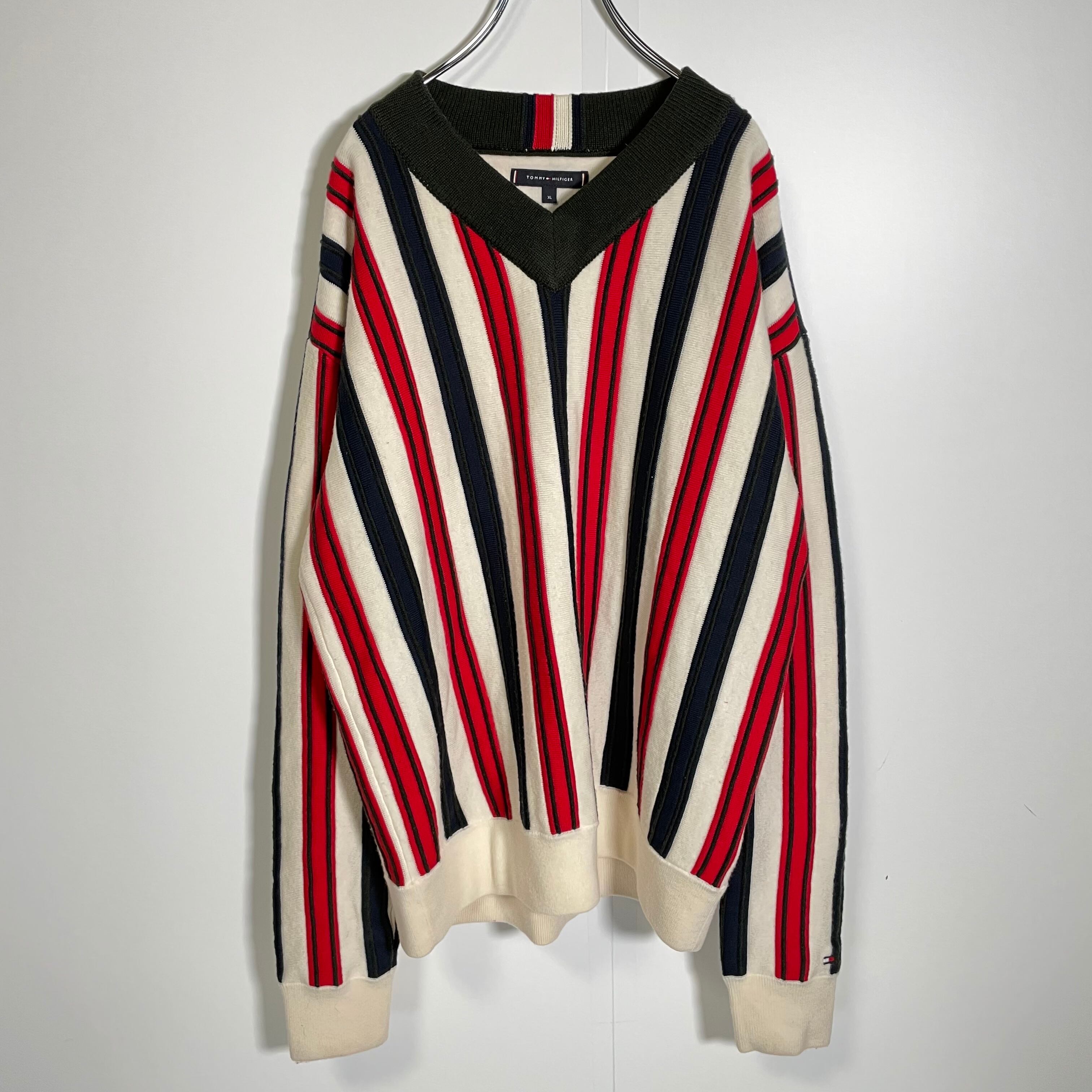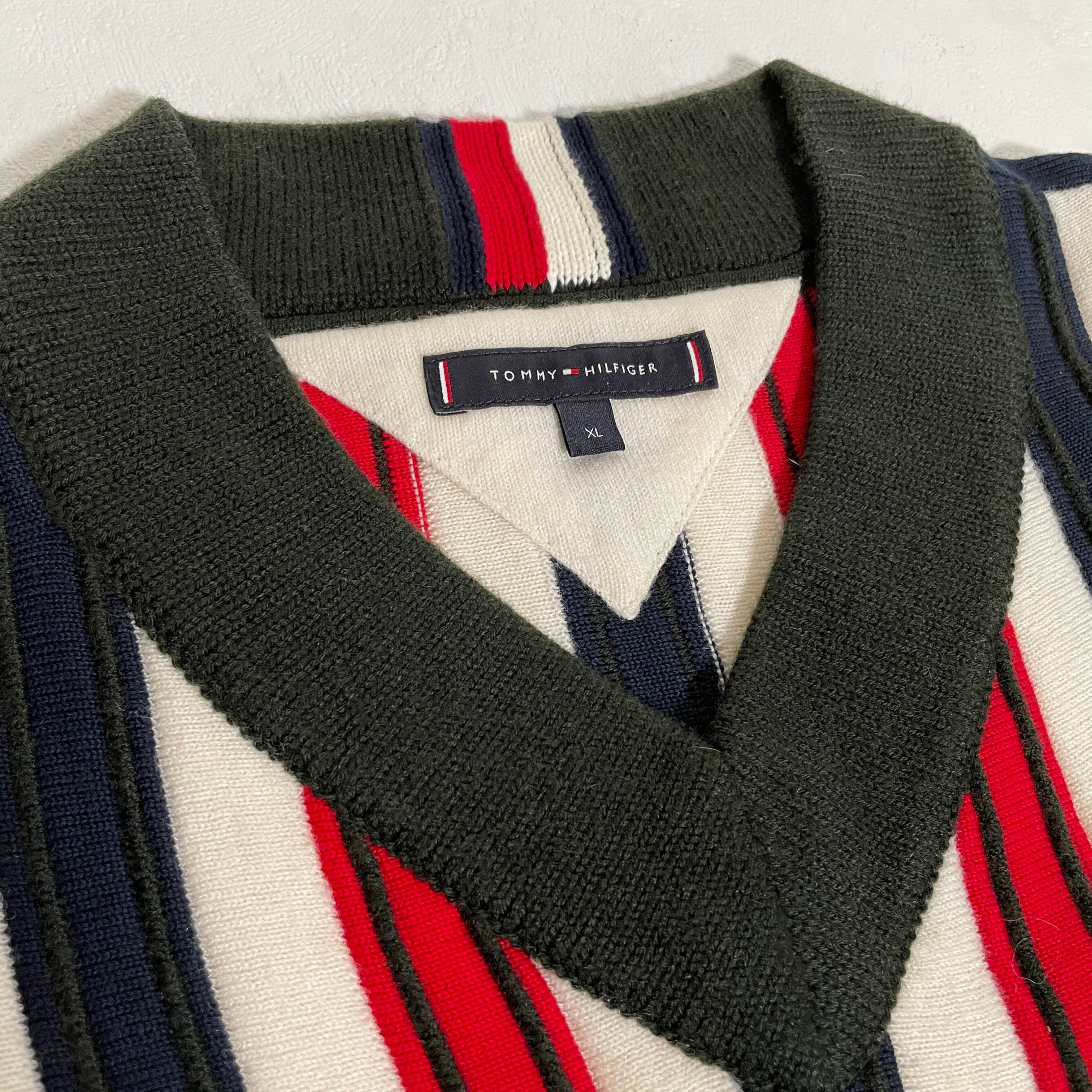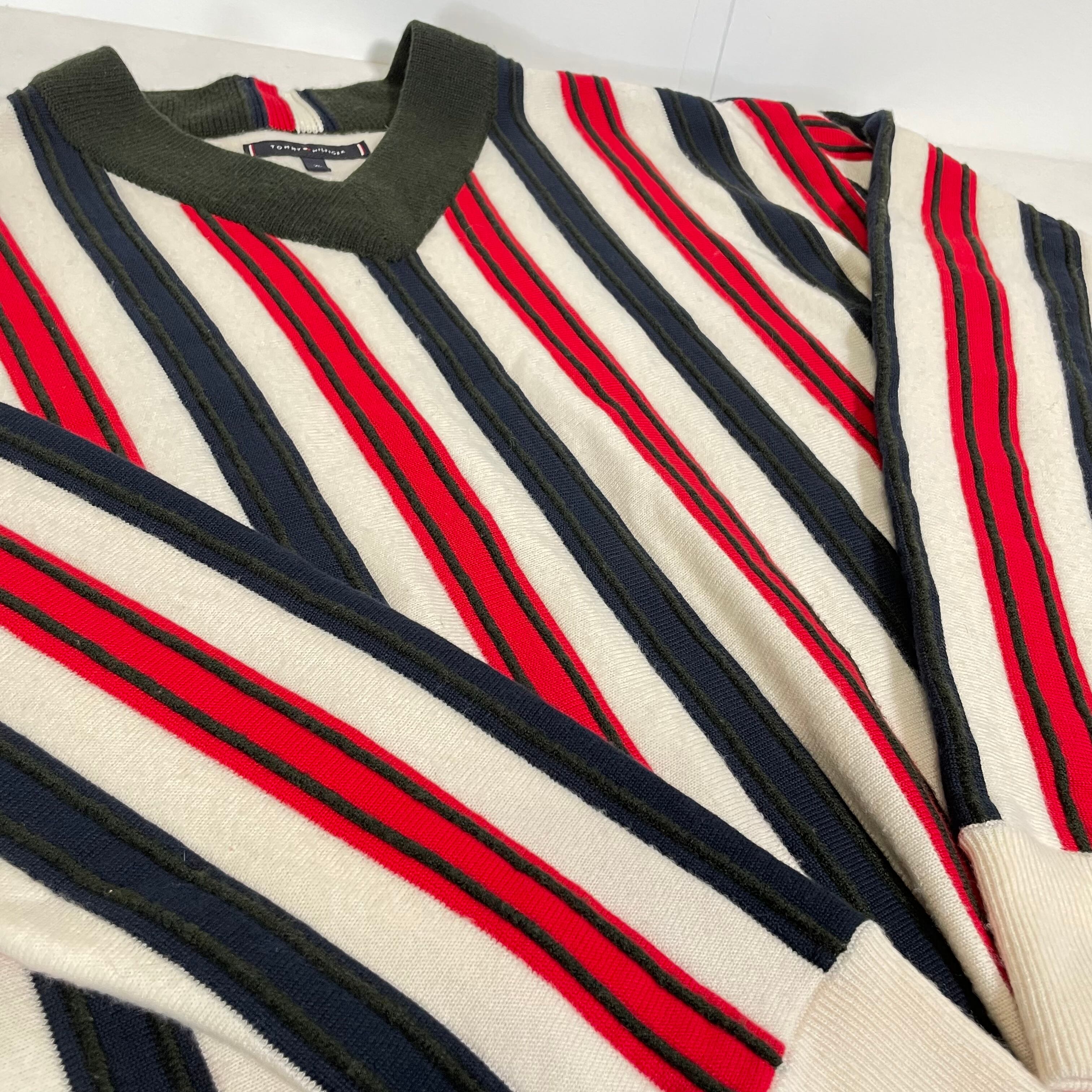 TOMMY HILFIGER ニットセーター 厚手 立体 ストライプ