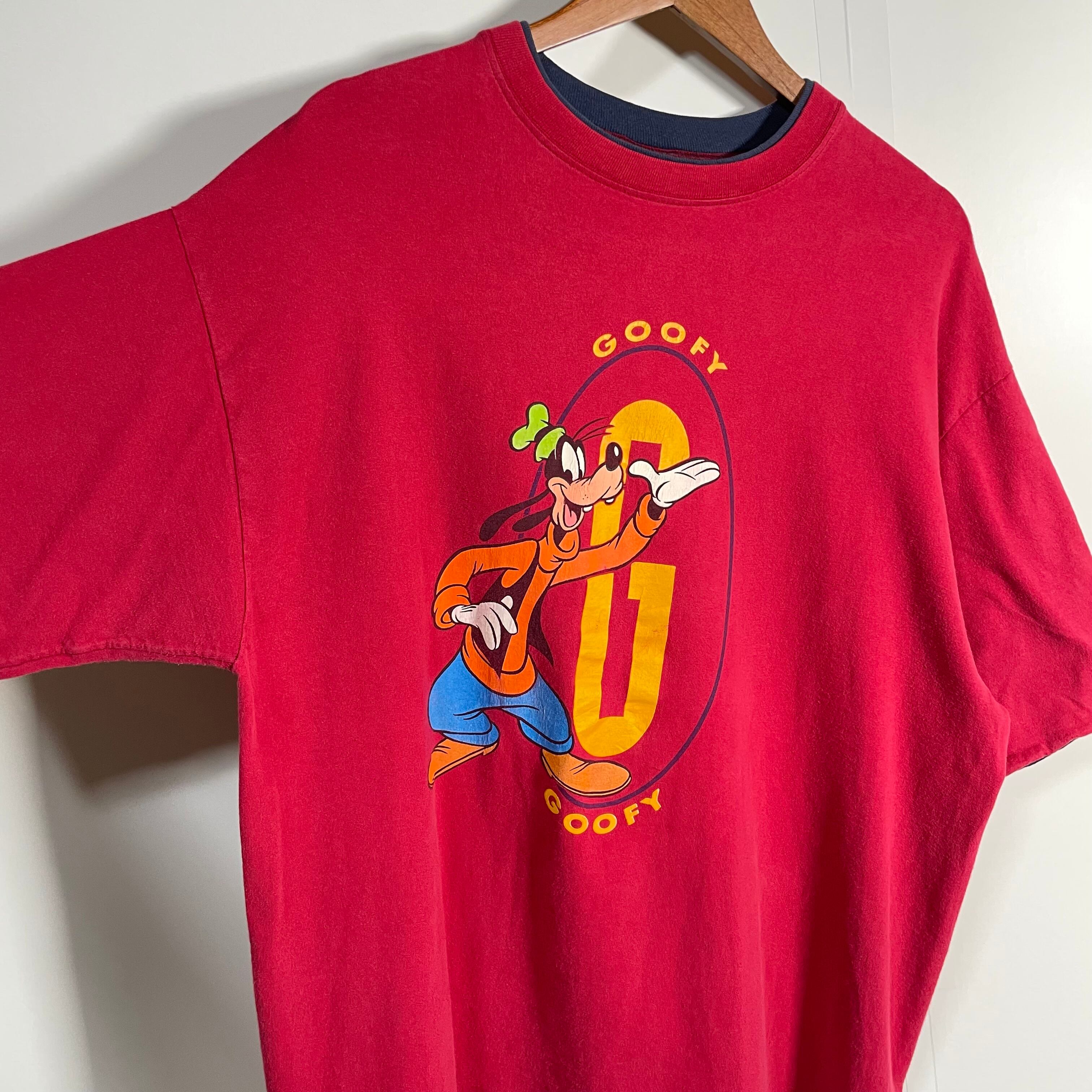 90s USA製 Disney GOOFY W face T-shirt