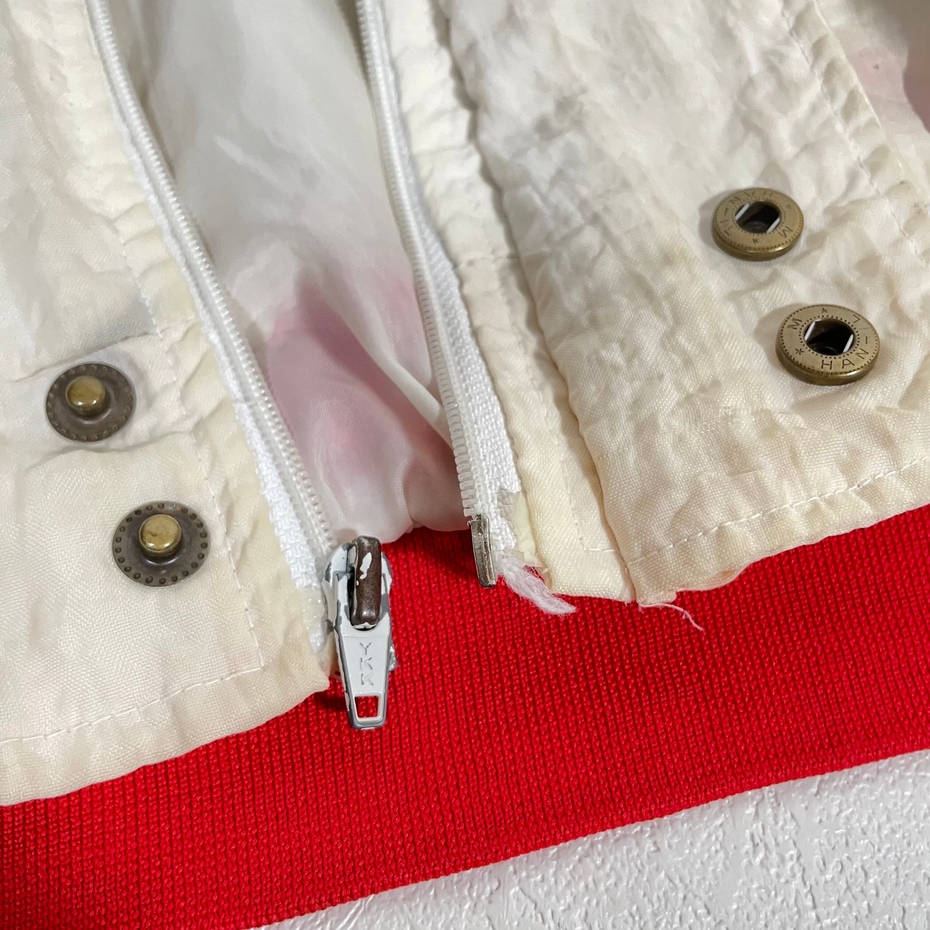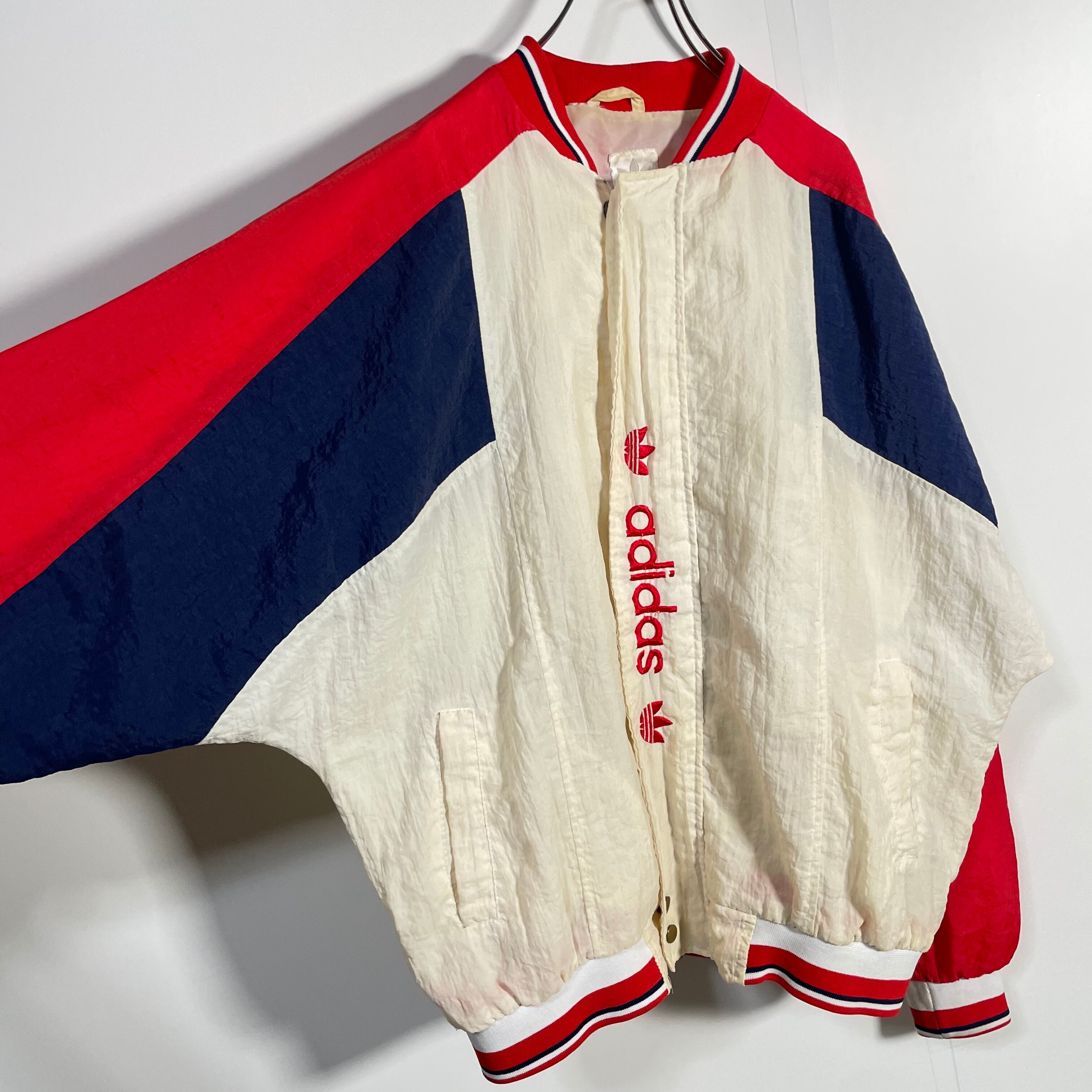 90s adidas デサント製 ナイロンジャケット ビッグトレフォイル トリコロール