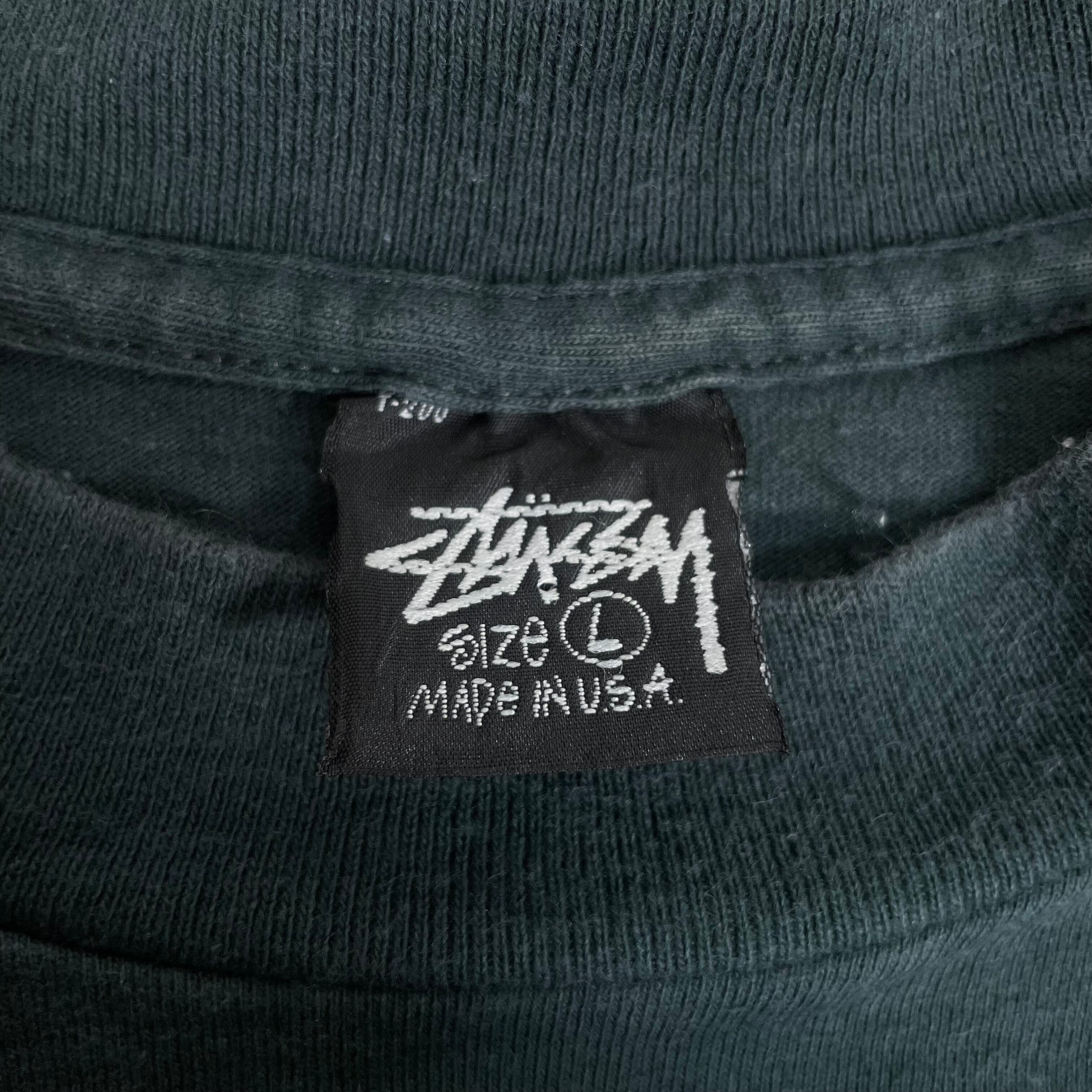 80s USA製 OLD STUSSY Tシャツ 折れクラウン 'S' デカロゴ モスグリーン L